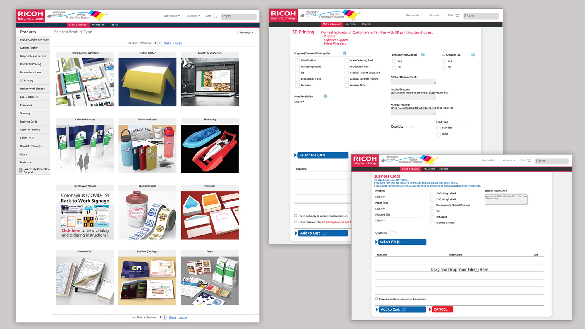 Understanding the connection between the users and application assisted me in devloping a new brand identification. Since this a digital storefront with satalite printing house accross the country I created a swoosh representing a start and finish point. incorporating a four color process pallet to re-inforce the printing deliverables.